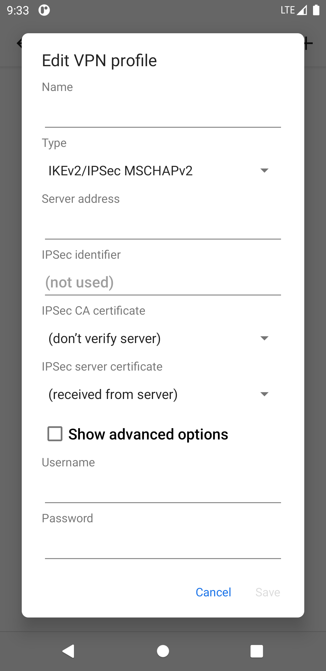 · Some Android systems may not support IKEv2 VPN natively. In this case, we recommend using third-party IKEv2 clients from trustworthy sources, such as strongSwan. You may download the strongSwan Android app from the Google Play Store or the strongSwan download server.
