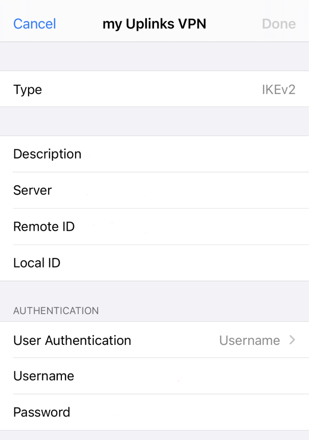 Fill up and tap done to save your VPN profile.